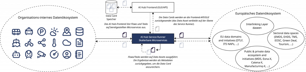 Der Schlüssel liegt in strukturierten Daten. Nur wie kommt Struktur ins Datenchaos? AI-Hub Core löst dieses Dilemma mit einer einzigartigen Metadaten-Schicht. Aus den gewonnenen Metadaten entsteht eine Data Card, die Datenquellen sichtbar, durchsuchbar und qualitativ bewertbar macht – ohne sie zu verschieben. So fließen nur relevante und werthaltige Informationen in den jeweiligen Datenraum, den man nun intelligent nutzen kann.