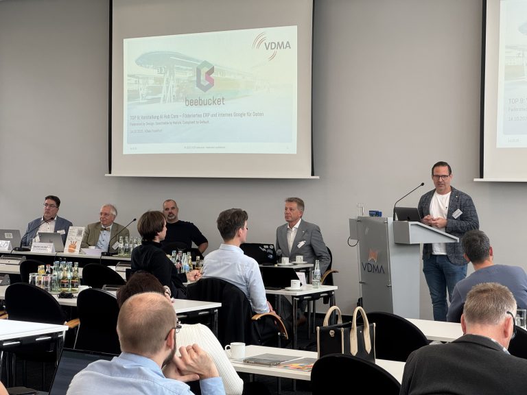 beebucket stellt im Rahmen der Veranstaltungsreihe Manufacturing-X seinen AI Hub vor. Die Veranstaltung richtet sich an VDMA-Mitglieder und interessierte Unternehmen im Datenökosysteme-Umfeld. Ziel der Veranstaltung ist, konkrete Lösungsansätze führender Softwareanbieter zu zeigen und in den gemeinsamen Austausch zukommen.